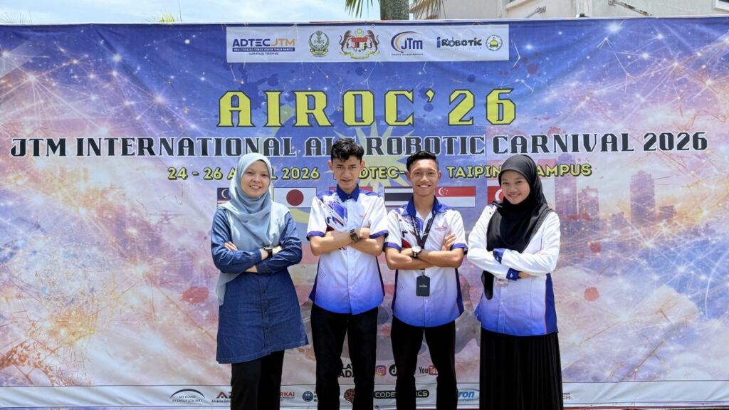 TAIPING – Kreativiti, teknologi dan keberanian mencuba bergabung menjadi satu apabila pelajar Politeknik Tuanku Sultanah Bahiyah (PTSB) membuktikan kemampuan mereka di pentas Karnival AI dan Robotik (AIROC) Antarabangsa JTM 2026 yang berlangsung di ADTEC JTM Kampus Taiping.