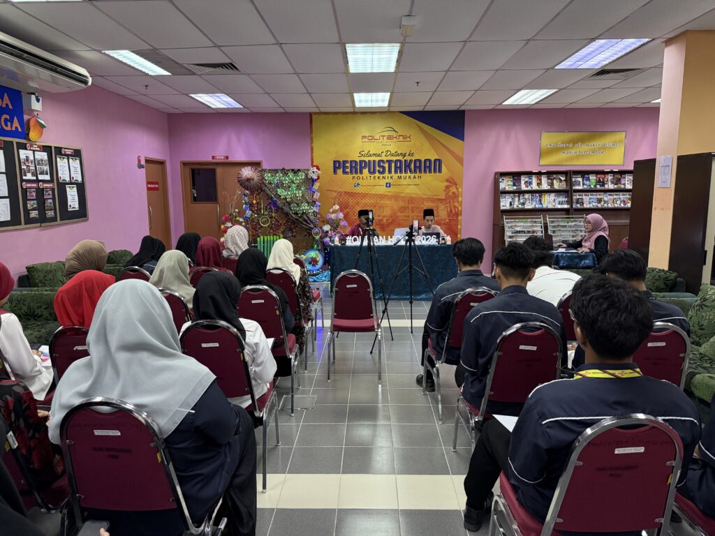 MUKAH, 11 Mac 2026 – Program #QuranHour peringkat Politeknik Mukah (PMU) telah berjaya dilaksanakan dengan penglibatan warga PMU yang terdiri daripada kakitangan staff dan pelajar. Program yang dianjurkan oleh Unit Pusat Sumber PMU ini berlangsung secara hibrid, iaitu secara bersemuka di Perpustakaan PMU serta dalam talian melalui platform Google Meet.