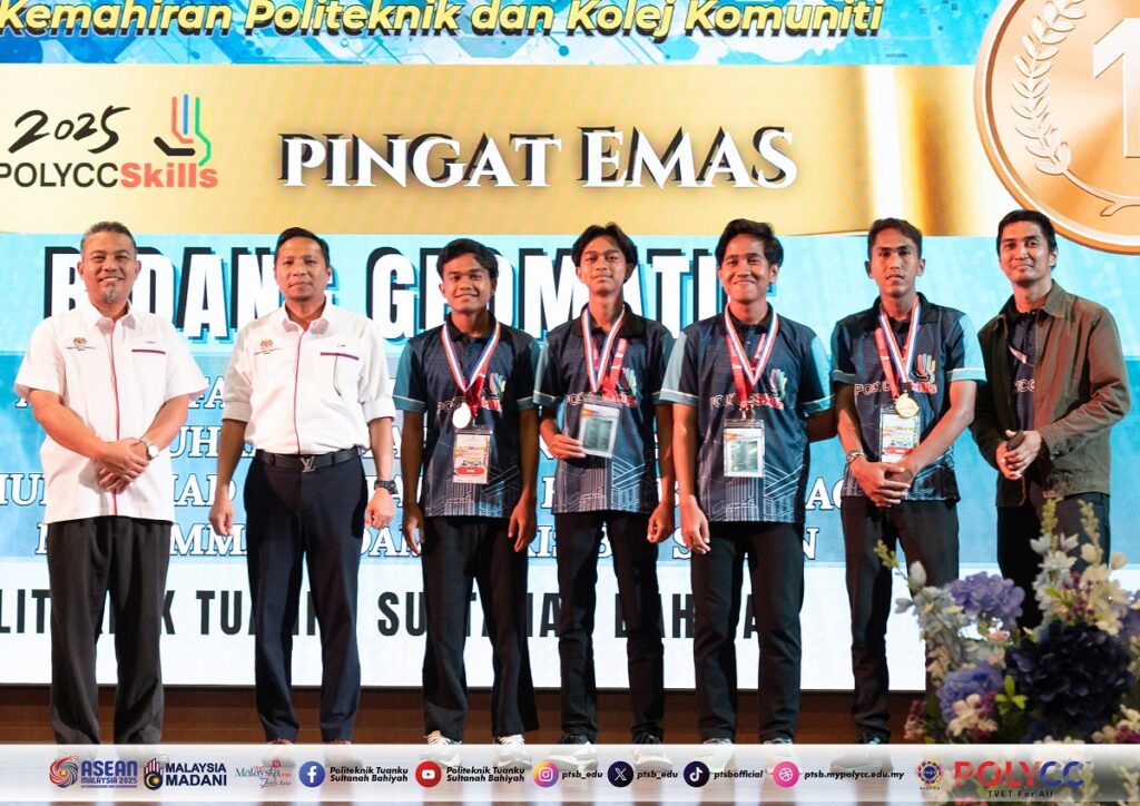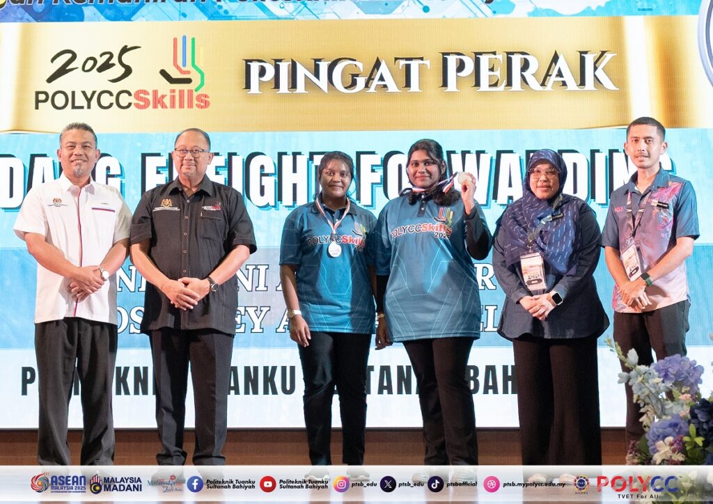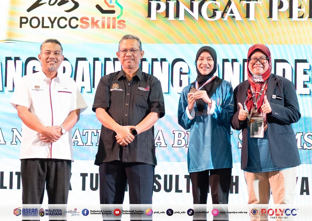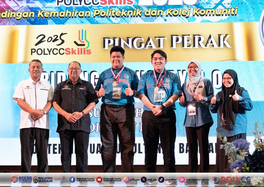 JITRA, 11 September 2025 – Politeknik Tuanku Sultanah Bahiyah (PTSB) mencatat pencapaian membanggakan apabila berjaya membawa pulang lima pingat dalam pertandingan POLYCCSkills 2025. Dalam majlis perasmian penutup yang berlangsung di Politeknik Sultan Abdul Halim Muadzam Shah (POLIMAS), PTSB diumumkan meraih satu pingat emas dan empat pingat perak melalui penyertaan dalam lima bidang kemahiran.