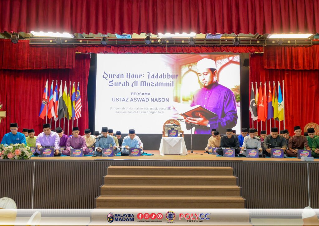 Pelbagai pengisian bermakna telah dilaksanakan sepanjang program ini, antaranya Quran Hour – Tadabbur Surah Al-Muzammil yang memberi ruang kepada warga POLYCC untuk mendekati Al-Quran melalui penghayatan dan tadabbur ayat-ayat suci. Selain itu, penyampaian Bakul Kasih Ramadan serta sumbangan zakat kepada pelajar asnaf turut diadakan sebagai usaha menyemai nilai keprihatinan dan semangat berkongsi rezeki dalam kalangan warga kampus.